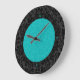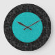 Bold Elegant Black And Turquoise Floral Damasks Large Clock