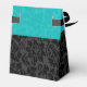 Bold Elegant Black & Turquoise Floral Damasks Favour Box