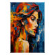This Bold Expressionist Female Portrait glossy poster print is a mesmerising display of rich textures, vivid colours, and dynamic brushstrokes. AI-generated, it draws inspiration from the Expressionist movement, using bold colour contrasts to convey deep emotion and a sense of inner contemplation. The woman’s face, set against a swirling background of fiery reds, oranges, blues, and yellows, captivates with its abstract yet soulful gaze. The energetic strokes and vibrant colour palette evoke feelings of passion, strength, and mystery. What makes this piece unique is its ability to merge classical Expressionism with a contemporary digital twist. Created by AI, it offers an innovative take on human emotion, making it perfect for modern art enthusiasts and lovers of avant-garde decor. This artwork works beautifully in living rooms, offices, or creative spaces, bringing a sense of inspiration and artistic flair. It's also an excellent choice for art-themed gifts, special occasions like birthdays or housewarmings, or for those who appreciate the emotional depth of Expressionist art.