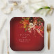 Bold Fall Floral Over Burnt Red Wedding Paper Plate