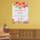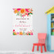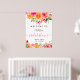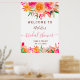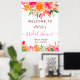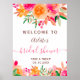 Modern girly bold floral watercolor welcome bridal shower with bright orange, peach, pink, and green flowers bouquet and elegant script font.