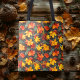 This elegant fall leaves bag combines vibrant tones of yellow, orange, and red on a dark background, encapsulating the warmth and style of the season. Perfect for fall shopping or casual outings, this bag radiates bold fall leaves and autumn vibes, making it the perfect accessory for those who love autumn. A striking and practical design for all your fall adventures.
