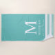 A teal and white monogram themed beach towel to celebrate your family or your next family reunion.