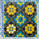 This large tile pattern is turquoise, golden yellow, sunflower, white, cream and blue black. The tiles are comprised of floral shapes, scrolls, hearts, and squares. Transform your bath with this bold beautiful pattern in rich bright colours.