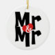 Two grooms Mr and Mr bold font in black and white with heart detail in red .. personalise this hanging ornament on the back with the grooms names and date of marriage .. great keepsake for the newlyweds .. .. designed by Ricaso