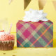 This stunning wrapping paper showcases a bold, modern tartan plaid with a striking diagonal pattern that catches the eye. The unconventional color palette is vibrant and sophisticated, featuring brilliant fuchsia red and deep emerald green, balanced by warm beige/tan and pops of bright orange. This is the perfect choice for an unconventional and fashion-forward holiday or any occasion that demands a unique, maximalist, and artistic gift wrap. Stand out with this incredibly stylish design.