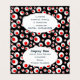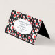 This fold over standing business card has a bold geometric abstract pattern of circles with bright red circles inside bigger white circles on a black background with a white oval for your information on the outside front and back. Customise all your information on the front, back, and inside with the templates.