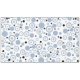 Larger and smaller geometric circles in slate blue grey silver and white, with black polka dot accents against a crisp white background. Fun, bold, trendy home decor with a coastal vibe. Original designs © TamiraZDesigns.