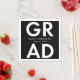 Custom graduation napkins featuring "Grad" in bold white lettering with a black background or color of your choice. Personalize the graduation party napkins by adding the graduate's name and graduation year. The personalized graduation napkins are perfect for both high school and college graduation parties.