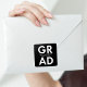 Personalized graduation stickers featuring "Grad" in bold white lettering with a black background. Personalize the modern graduation stickers by adding the graduate's name and graduation year. Use the graduation stickers to seal envelopes, favor bags, and more!