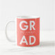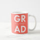 Modern graduation coffee mug featuring "Grad" in bold white lettering with a coral background or color of your choice. Personalize the graduation mug by adding the graduate's name and graduation year. The coffee mug makes for a great personalized graduation gift for both high school and college graduates!