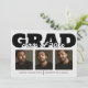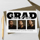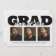 Our Bold Grad is a perfect Graduation Announcement features three photos of your graduate proudly at the bottom of the announcement card while a bold font spells out Grad. The back of this graduation announcement is a modern trendy design of black squares forming diamonds.