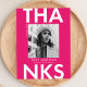 Trendy, modern graduation thank you postcard featuring the graduate's photo with "Thanks" in bold white lettering and hot pink background. Personalize the front of the photo graduation thank you postcard by adding the graduate's name, school name, and graduation year. The back of the graduation photo thank you card features your return address with space for your typed or handwritten message.