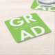 Custom graduation paper coasters featuring "Grad" in bold white lettering with a lime green background. Personalise the graduation coasters by adding the graduate's name and graduation year. The personalised graduation coasters are perfect for both high school and college graduation parties.