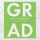 Personalised graduation wine labels featuring "Grad" in bold white lettering with a lime green background. Personalise the modern graduation wine labels by adding the graduate's name and graduation year. The modern graduation wine labels are perfect for graduation parties!