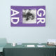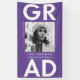 Custom graduation banner featuring "Grad" in bold white lettering with a purple background or color of your choice. Personalize the photo graduation banner by adding the graduate's name, school name, and graduation year. The trendy graduation banner is perfect to display at your graduate's high school or college graduation party!