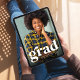 With a bold retro grad in white, this vertical one-photo card is the perfect way to announce your graduate to family and friends. The vintage styling is subtle and simple for this graduation announcement and perfectly on trend for this graduating class. The back of this card is dark charcoal grey with a speckled texture. The colour can be changed by clicking "customise further."
