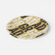 This modern unisex graduation party paper plate stylish design features a simple bold black and white grunge 'GRAD' typography pattern on a faux gold foil texture background.