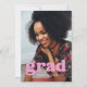 This simple and modern 2022 graduation announcement features a trendy, bold pink text overlay, along with two photos of the graduate. A stylish and straightforward way to let friends and family know about the grad!