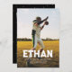 Featuring a bold name on a single vertical photo, this graduation announcement is perfect for a graduating athlete. With a sporty letterman style font, your design can be customised with all the grad's details on the front. The back includes room for two additional photos as well as text that can be used for graduation party invitation details, future plans or anything else you'd like. With its sporty athletic style, this graduation announcement and invitation is great for guys and girls and works with a variety of photos.