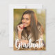 Graduate is written in white handwritten script over your senior portrait photo makes a chic, modern graduation announcement card. Customise with your name and high school or university class of 2025 under the bold typography and add your personal details on the back of these elegant text overlay graduate cards.