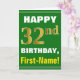 Bold, Green, Faux Gold 32nd Birthday w/ Name Card