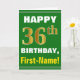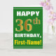 Bold, Green, Faux Gold 36th Birthday w/ Name Card