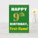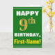 Bold, Green, Faux Gold 9th Birthday w/ Name Card