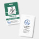 A bold dark green cover is accentuated by well placed white column lines that highlights your badge information. Over at the top is the photo template to place your photo which measures 1,000 x 1,000 pix. Your prestigious name lie in a white column just below the photo. For creative identification, your name is split into two different font sizes ; You may want to consider having dual colours to make your name stand out. In the corresponding column below is your job title. At the base of the badge are the optional blue healthcare logo which you can use, the organisation name and contact details.