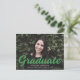 Simple and stylish graduation party invitation postcards featuring the graduate's horizontal photo with "Graduate" in a bold green script. Personalise the photo graduation party invite by adding the graduate's name, school name, and graduation year. The invite reverses to display your return address and graduation party details.