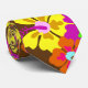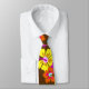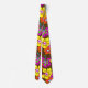 Retro brown, floral neck tie with a big, bold print of colourful hibiscus flowers.  Illustrated design in colours of yellow, orange and pink make the perfect accessory for tropical wedding groom and groomsmen. Choose differing background colours for each of the groomsmen and ushers.