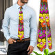 Retro brown, floral neck tie with a big, bold print of colourful hibiscus flowers. Illustrated design in colours of yellow, orange and pink make the perfect accessory for tropical wedding groom and groomsmen. Choose differing background colours for each of the groomsmen and ushers.