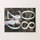 This modern and puzzle design is perfect gift for couples who are getting married or celebrating an anniversary. The wedding date is displayed in large white numerals in white with the wedding date year written out in a complimentary script font beneath. The couple's names are display inside the zero for months January through September, and to the left of the one for months October through December. The modern wedding date design sits on top of a photograph, making this puzzle really unique.
