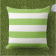 A bold outdoor pillow featuring vibrant lime green and white wide horizontal stripes. The lively cabana stripe pattern brings fresh, energetic style to patio furniture, garden benches, or poolside chairs. A fun accent that adds a bright pop of colour to any outdoor arrangement.