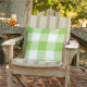 A bold lime green and white outdoor pillow with a large-scale gingham check pattern. The oversized lime check brings vibrant, energetic style to patio seating, garden furniture, or poolside chairs. A lively pattern that adds a bright pop of colour to any outdoor arrangement.