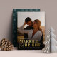 Share a wedding photo at the holidays with these bold, modern typography-based Christmas photo cards. Design features a full bleed single vertical or portrait orientated photo, with "married & bright" overlaid in gold foil lettering joined by an oversized ampersand. Personalise with your wedding date and names.