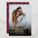 Share a wedding photo at the holidays with these bold, modern typography-based Christmas photo cards. Design features a full bleed single vertical or portrait orientated photo, with "married & merry" overlaid in gold foil lettering joined by an oversized ampersand. Personalise with your wedding date and names.
