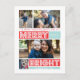 Bright and modern holiday photo cards in red and blue with the words "Merry and Bright" that can be personalised with 4 photos and a signature.