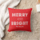 Bright red and white Christmas Holiday pillow design with bold typography that says "Merry & Bright" and can be personalised with your family name. Designed to coordinate with the "Bold Merry & Bright" holiday collection by Origami Prints.