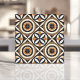 This bold mid-century modern tile features concentric circles and abstract lines in earthy brown, ochre yellow, and vintage blue tones, inspired by 1960s Scandinavian design. With its symmetrical and eye-catching layout, this tile is perfect for creating stylish backsplashes, accent walls, or retro-inspired interiors. The harmonious colour palette and geometric design make it a versatile choice for modern and vintage aesthetics alike.