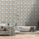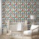 Add a pop of colour to your walls with this fabulous retro mid century wallpaper. It features the bright and bold colours of turquoise blue, two shades of orange, gold, tan, and black.