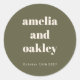 Bold Minimalist Boho Olive Green Retro Simple Custom Wedding Classic Round Sticker