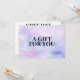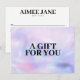 Elevate your gifting experience with our customisable gift certificates. Crafted on a faux holographic background and adorned with bold, black text that reads 'A Gift For You,' these certificates serve as a canvas for your personal touch. Customise the front with your own heartfelt message, making each gift certificate a truly one-of-a-kind gesture. But it doesn't stop there. Flip it over, and you'll find a sleek and professional presentation. Your name or business name is elegantly showcased in bold black typeface, setting the stage for a memorable gift-giving moment. Underneath, you'll find convenient fields for 'To,' 'From,' and 'Amount,' ensuring a complete and professional touch to your thoughtful gift. Give the gift of choice and make every occasion special with our customisable gift certificates. Perfect for boutiques, online stores, beauty salons, nail salons, hair stylists, and more! Start personalising yours today! Design by 1201AM Design Studio | www.1201am.com