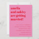 This modern wedding invitation features a bold pink background with ed typography for a confident, contemporary look. The layout includes space for key wedding details along with a convenient online RSVP, making it easy for guests to respond digitally. Designed for couples who want a statement invitation that feels fun, modern, and effortless. Names, date, location, and RSVP information can be customized to match your celebration.