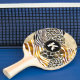 Welcome to the jungle. A combination of different animal prints makes this ping pong paddle stand out from the crowd. Leopard spots, snake skin, giraffe, tiger stripes and zebra stripes are combined to make this striking pattern. Each of the animal prints has faux gold accents to make this ping pong paddle shine. Personalize it with your monogram and name to make it your own.