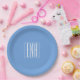 Bold Modern 3 Initials Monogram | Soft Blue Paper Plate