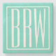 Bold Modern 3 Initials Monogram | White On Aqua Stone Coaster