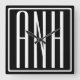 Bold Modern 3 Initials Monogram | White On Black Square Wall Clock