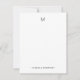 Minimalist personalised stationery with a modern monogram design, perfect for professional correspondence or sophisticated personal notes. The front features a clean white background with a monogram initial at the top and a name displayed in sleek black serif lettering at the bottom, creating a refined and contemporary layout. The reverse side showcases a striking abstract swirl pattern in bold black and soft grey tones, adding a modern artistic contrast that elevates the design’s uniqueness. Ideal for business professionals, writers, or anyone who values stylish custom stationery with a clean yet artistic flair.
