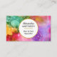 The front of this beautiful business card features bold, multicolored watercolor paint splatters, with the name and job title appearing inside a gold-edged white circle at the centre in popular typography, separated by a gold divider. The back of the card features the business name at the top, and three lines of contact information at the bottom, separated in the middle by a gold divider. You can personalise this item for yourself or a loved one by changing all of the text lines.
